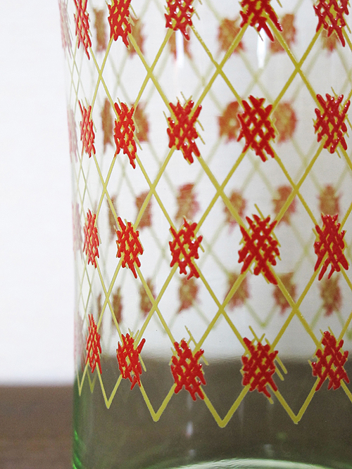 半透明のグリーンのガラスにオレンジの「チョメチョメ」印が入っていますw