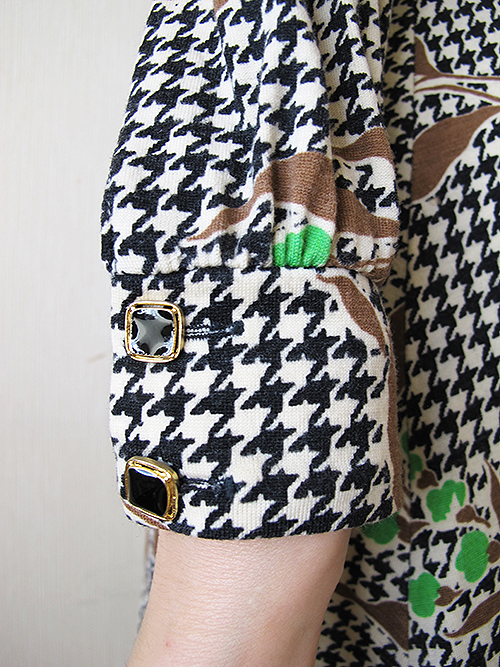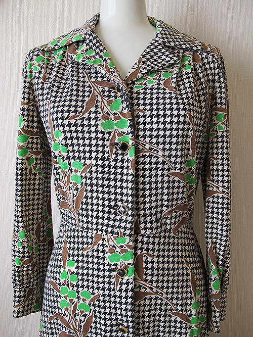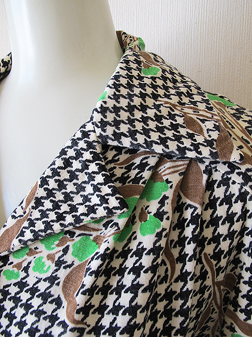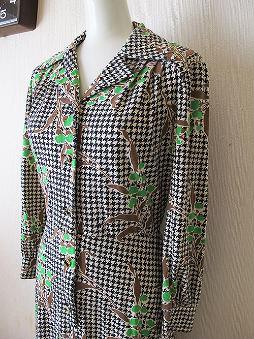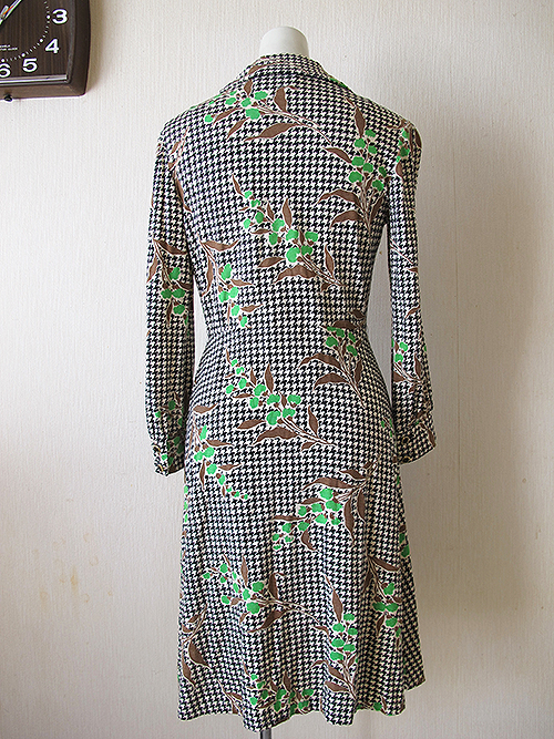 千鳥格子×植物柄のレトロなワンピースです。
