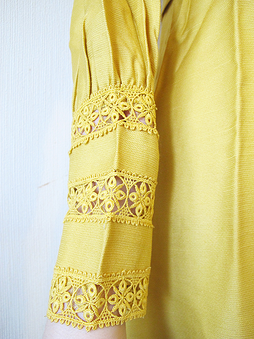 写真では少し明るく写ってしまいましたが、実物はもう少し落ち着いた渋めのマスタードイエローです。
