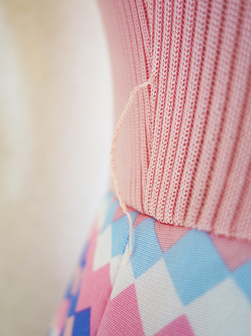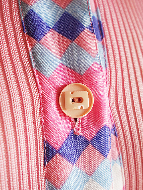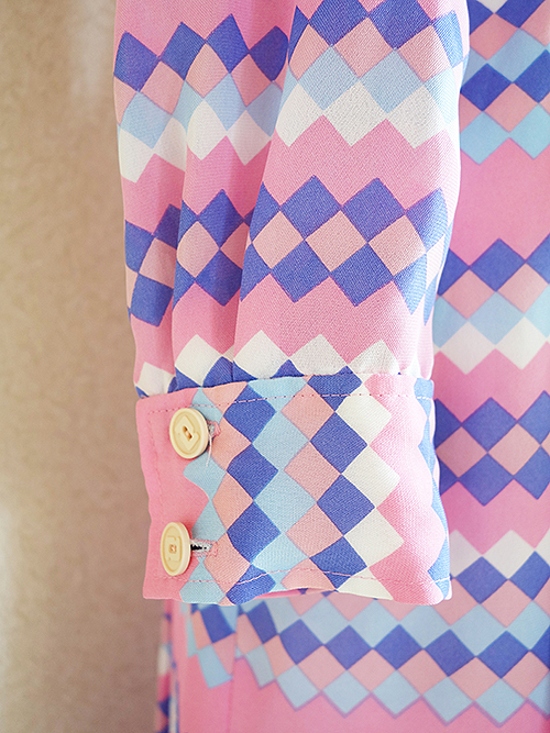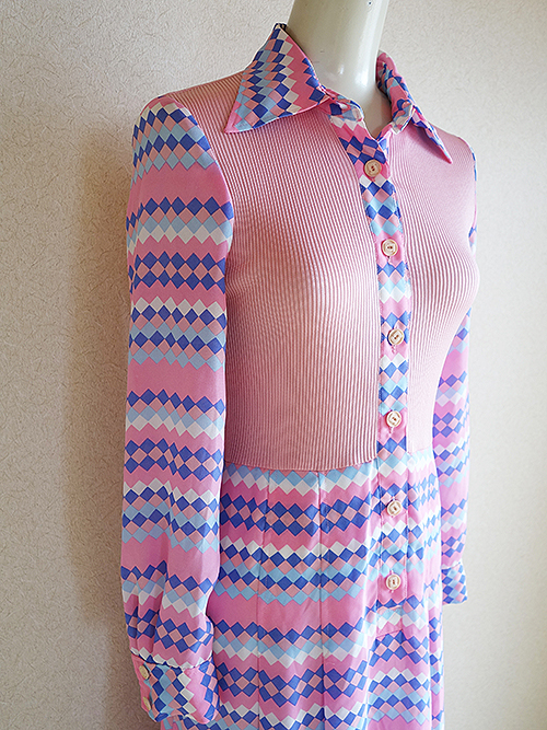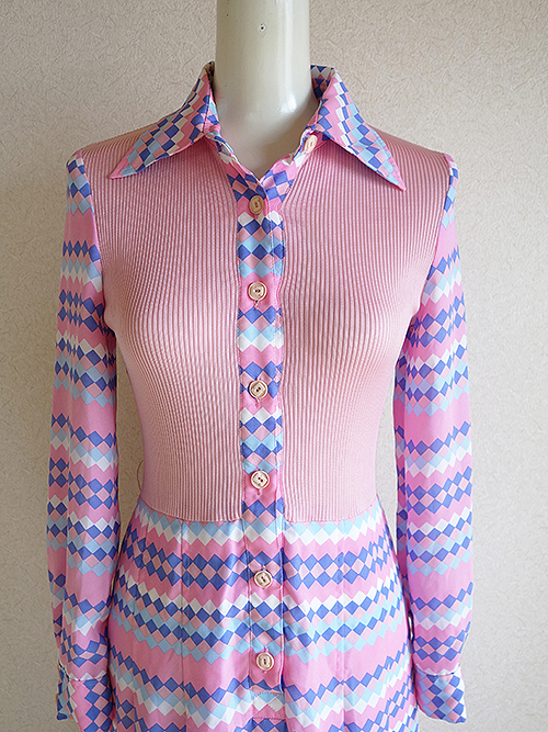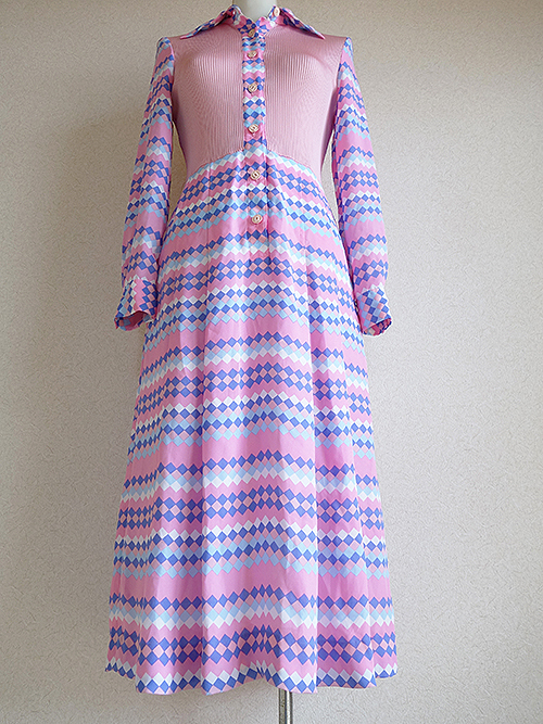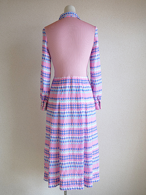 ピンクの幾何学模様のワンピースです。