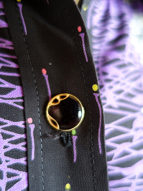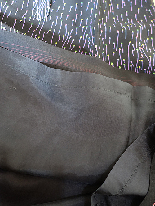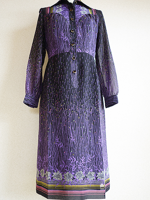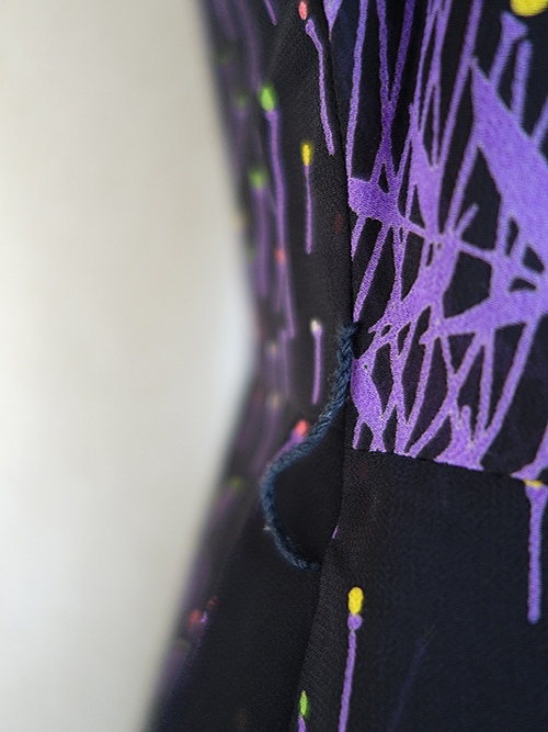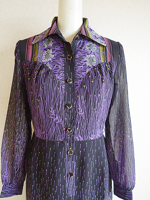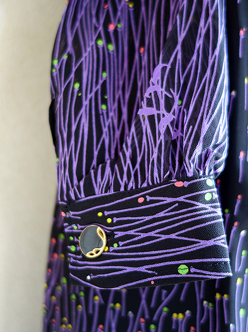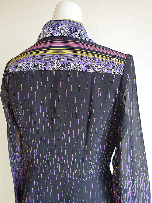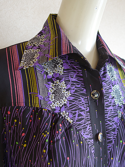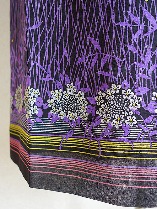 黒字に紫と白地の花柄、そして蛍光色のピンクや緑がまるで夜の蛍のよう。