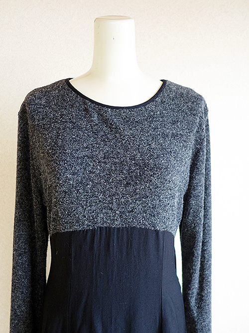 こちらのワンピースはトップス部分がウールのニット、スカートがレーヨン素材という異素材の組み合わせ☆