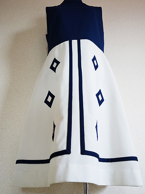 紺×白のレトロなワンピースです。日本製ではありません。