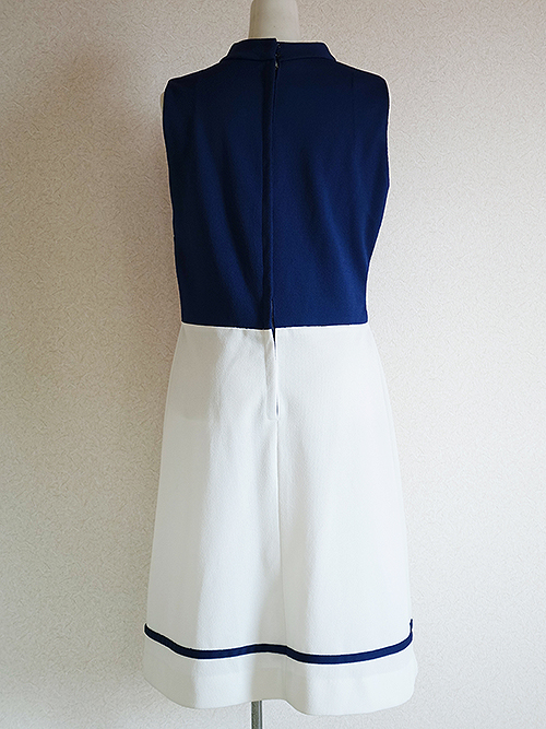 紺×白のレトロなワンピース(ノースリーブ)
