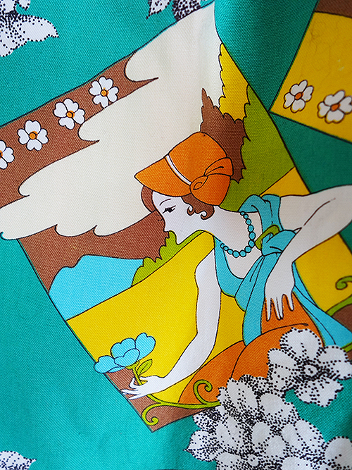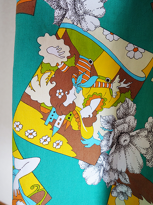 エメラルドグリーンに女の人のレトロ柄。個性的でいいですね♪