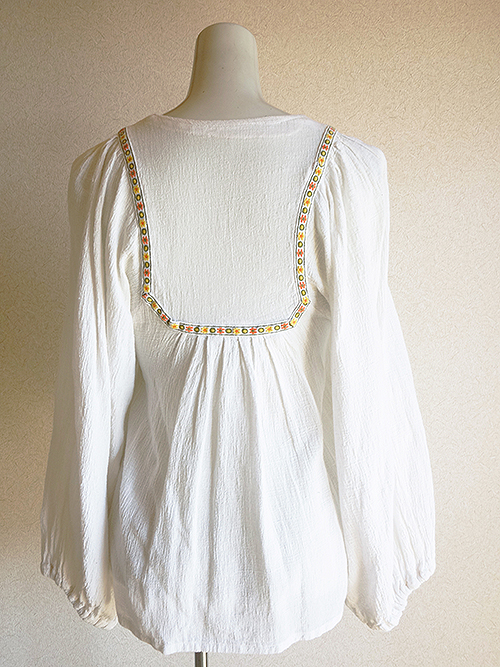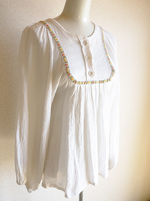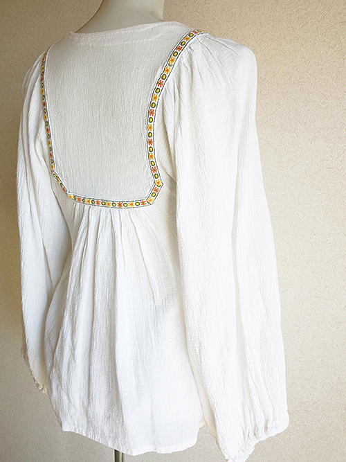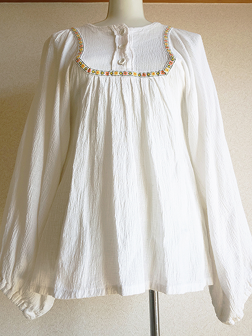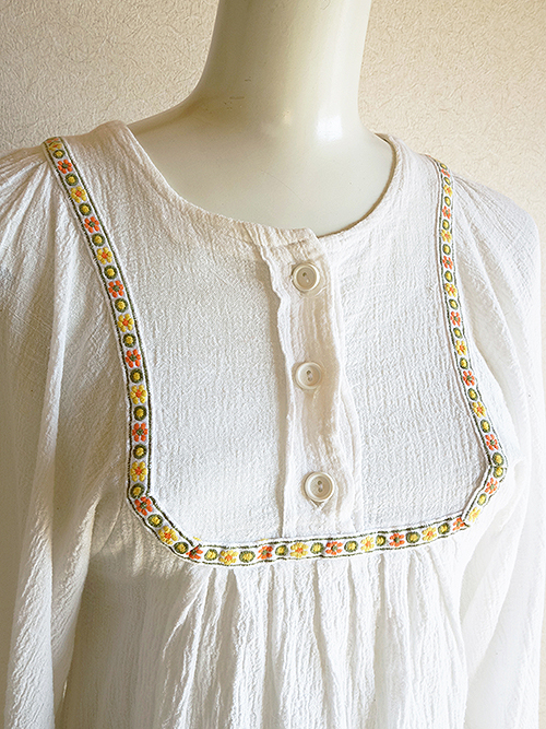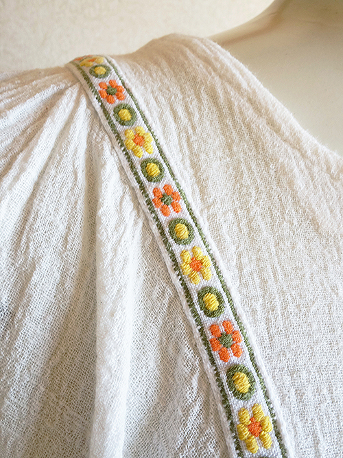 白いガーゼのような生地にかわいらしいチロリアンテープがアクセント♪